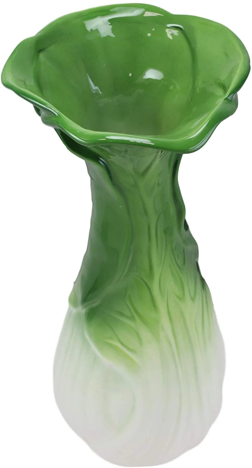 • This Hearty Green Chinese Bok Choy Cabbage Vase is made of ceramic, painted and polished individually by hand. Our traditionally crafted pottery are made of the highest quality porcelain available and fired at a high temperature to maximize the strength of the porcelain, making them superior to other ceramics in the market. Our pottery are more resistant to cracks, stains, and scratches. Our porcelain is food safe and contains no lead or cadmium.