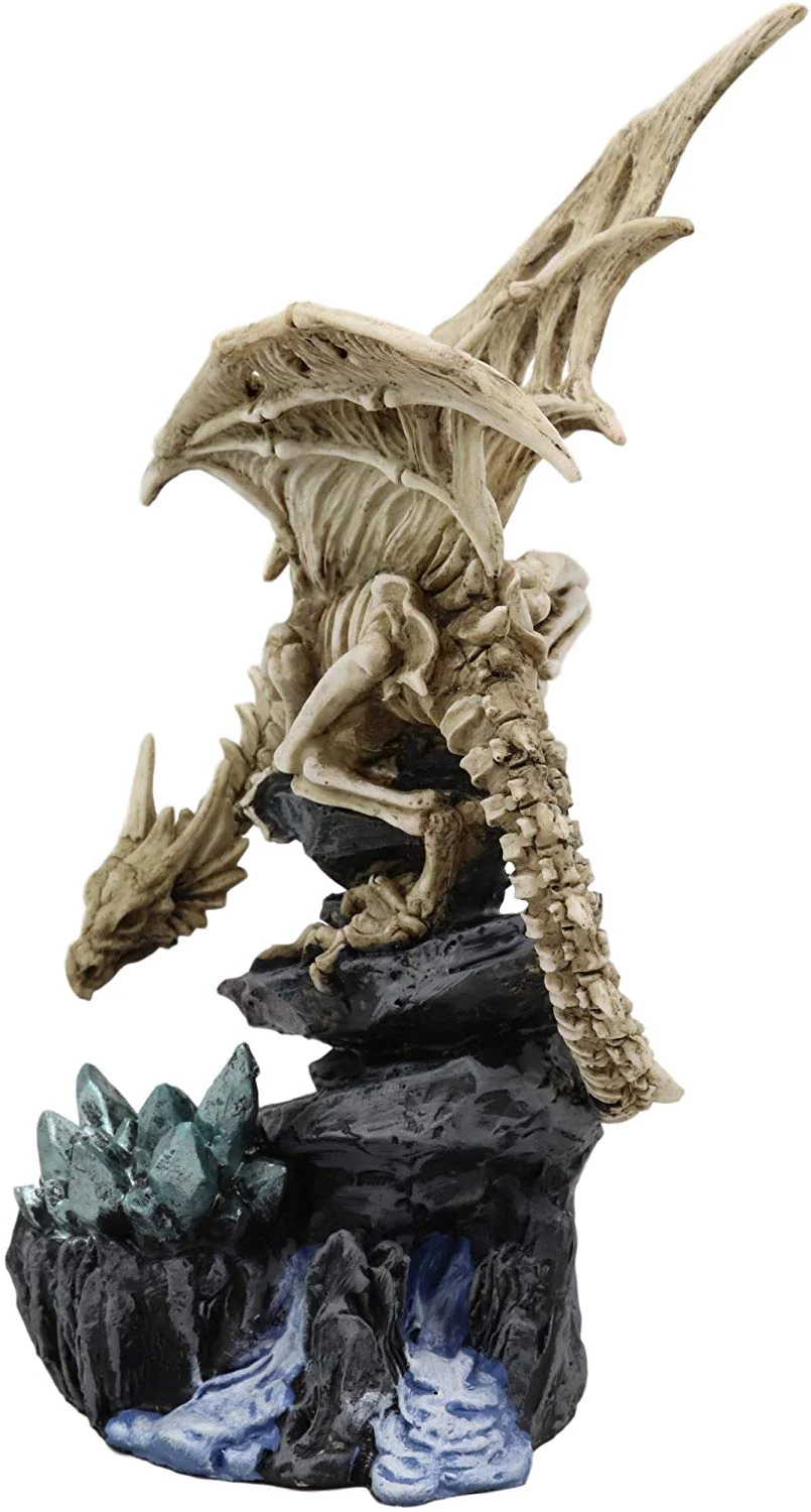Ebros 10" Tall Gothic Skeleton Bone Dragon Perching On Crystal Cavern Statue Shadow Ghost Alchemy Drake Fantasy Dungeons and Dragons Decor Figurine Ossuary Macabre Halloween Figurine