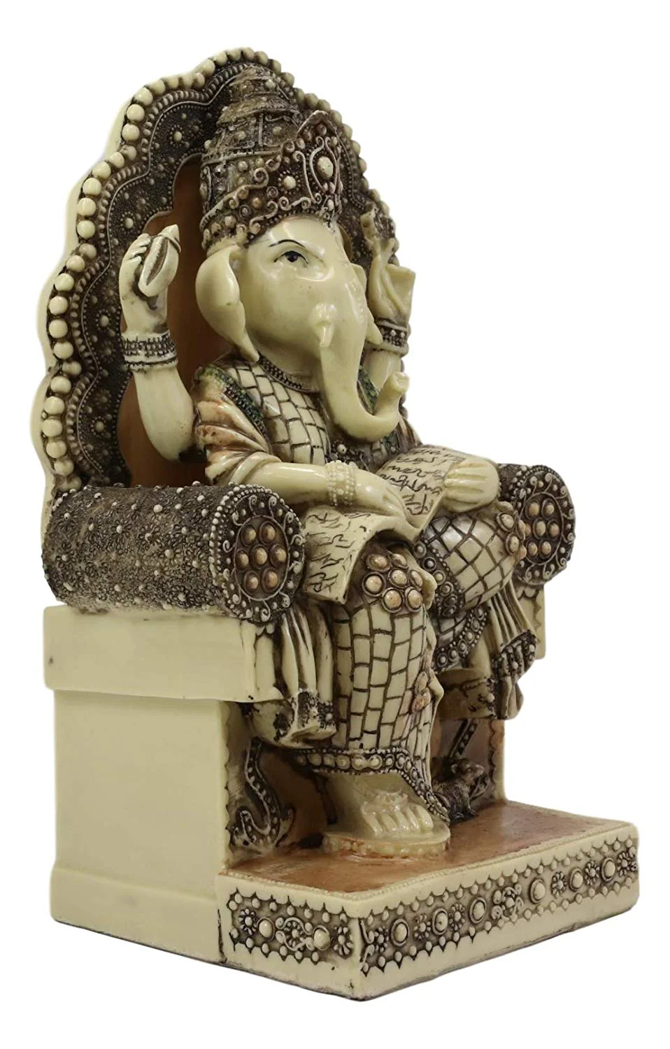 Ebros 11.25"Tall Hindu Ganesha Sitting On Royal Throne With Tiny Mouse Statue