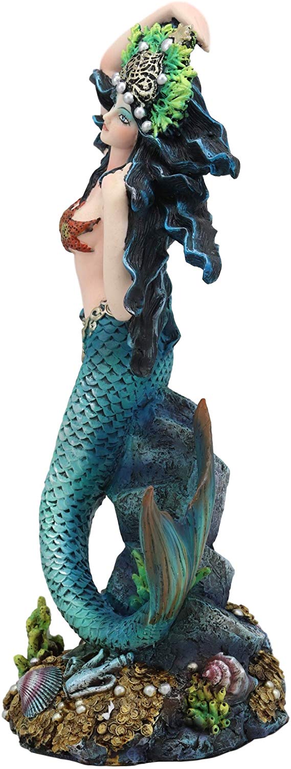 Ebros 11"H Nautical Turquoise Tail Mermaid Pearl Crown Princess By Treasures Statue