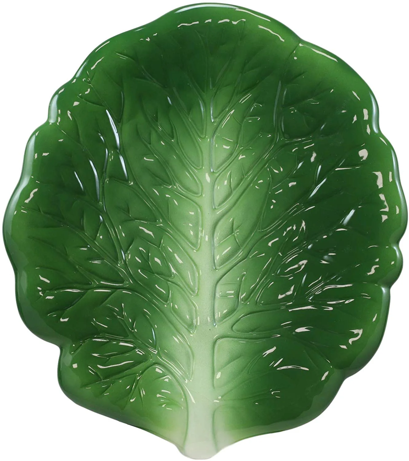• Here is a fresh and fun kitchen dish dinner plate shaped and colored like the collard green leaf! It is the perfect plate for an exotic, hearty and fresh presentation for your pastas, fruits, salads, appetizers, lunch/dinner entrees and more!