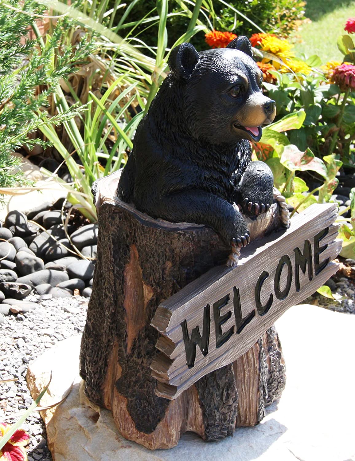 - This Black Bear Welcome Figurine can be displayed indoor/outdoors (it is special coated to withstand the sun and rain).