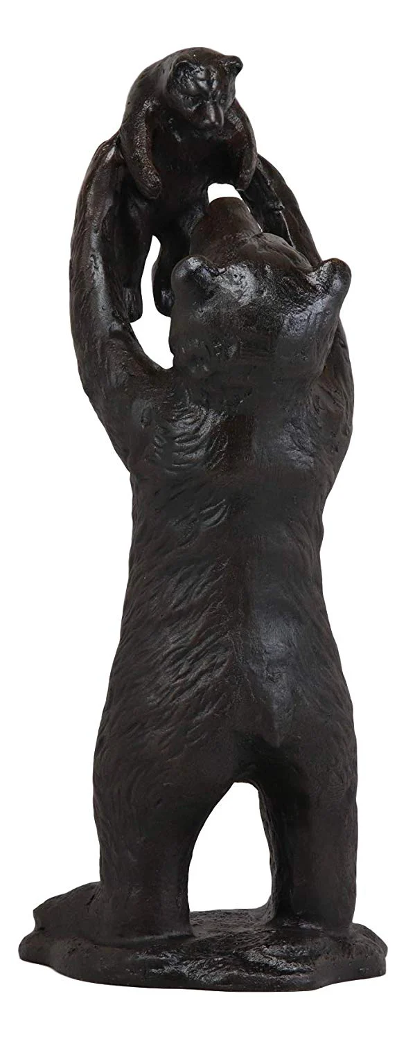 16"H Aluminum Whimsical Rustic Forest Black Momma Bear Lifting Her Cub Statue
