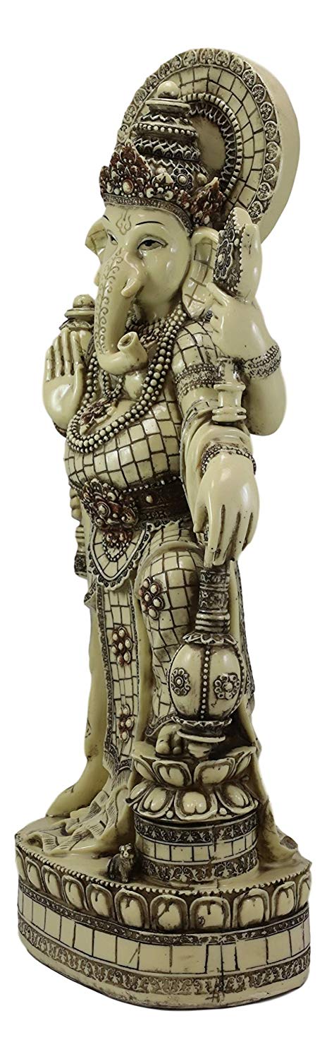 • This Ganesha design is inspired by Balinese Hindu temple sculptures in Indonesia, well know for their expert wood and stone artisans. Ganesha is designed in 'Batik' style clothing carved into the resin body. Ganesha is widely revered as the remover of obstacles, the patron of arts and sciences and the deva of intellect and wisdom. As the god of beginnings, he is honored at the start of rites and ceremonies.