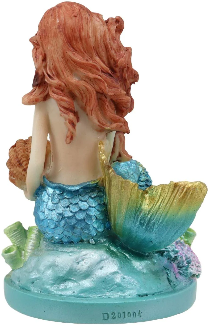 Ebros 4.5" Tall Colorful Nautical Ocean Mermaid Mergirl with Pearl Shell and Blue Tail Sitting On Corals Statue