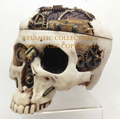 Ebros 7.25 Inch Mechanical Steampunk Open Skull Decorative Box Statue Figurine