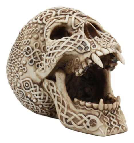 • Decorate your home for the halloween, day of the dead season or any season with this skull. This vampire skull is of Celtic theme, with distinct celtic knotworks and tattoo symbols. He is gaping wide, making room for you to set cigarettes by his fangs. You can also use him just as a decorative skull as a Halloween prop or a Haunted themed decor.