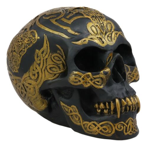 • This Tribal Black and Gold Celtic Skull figurine is made of high quality polyresin, hand painted and polished.