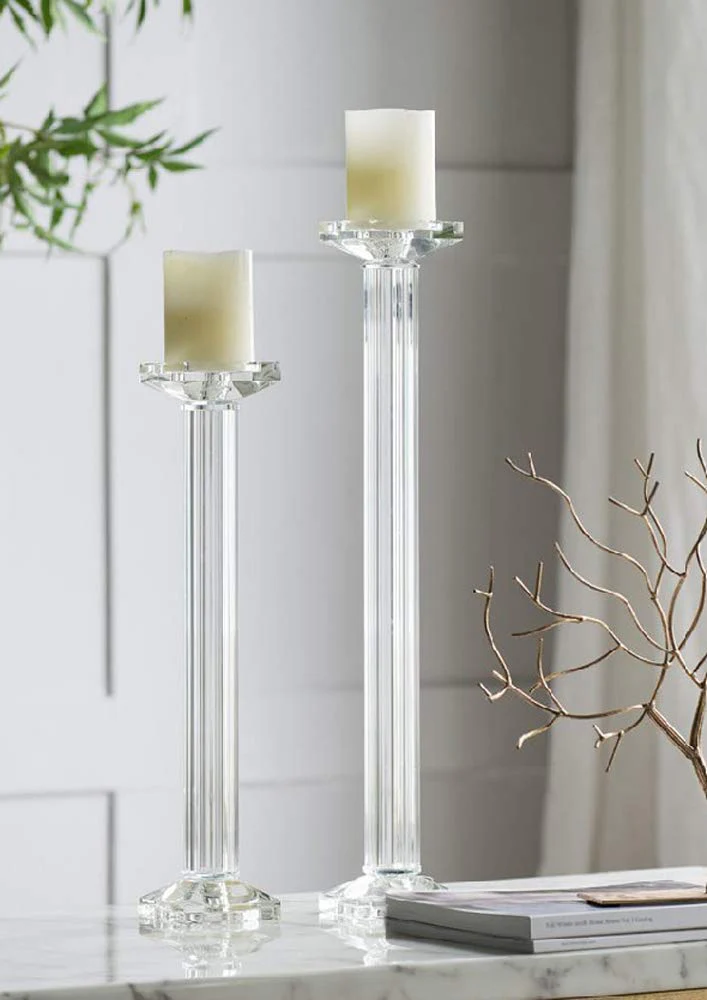 Ebros Contemporary Crystal Glass Pillar Column Candle Holder Candlestick Decor