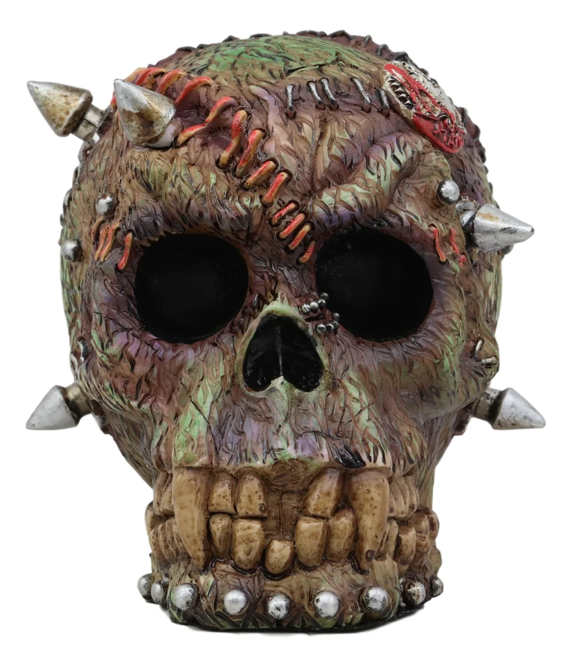 • This Macabre Skull is the culmination of the dark underworld; a combination hybrid of a Zombie, Frankenstein and Vampire. This skull definitely carries a wicked WOW factor for all eyes that see it.