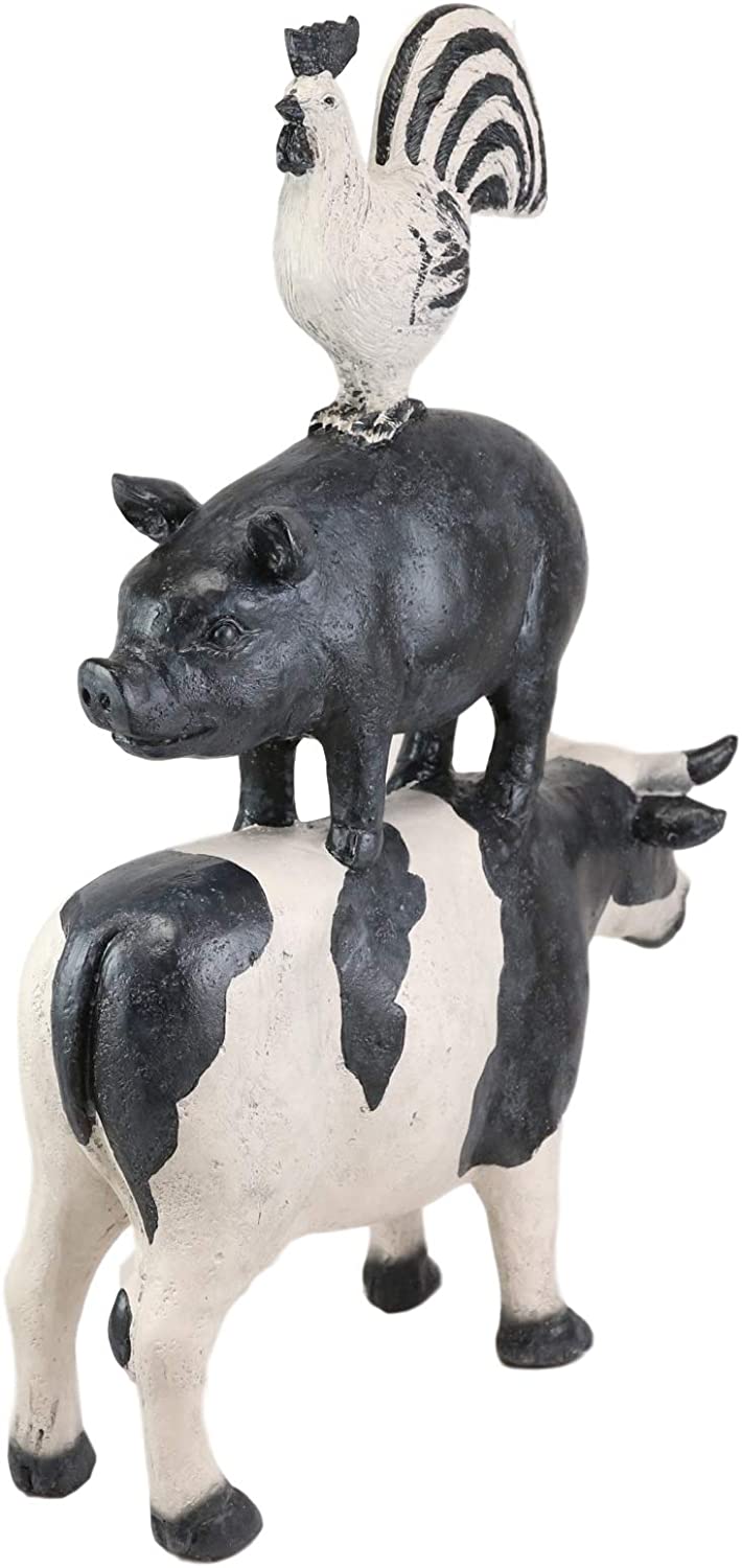 • Add rustic whimsy and charm to your kitchen or dining room with this gorgeous barnyard animals sculpture. Starring the famous chicken, pig and cow stacked on top of each other, they will add western rustic charm to any kitchen! Made of polystone resin, this statue will maintain its beautiful colors for years to come.