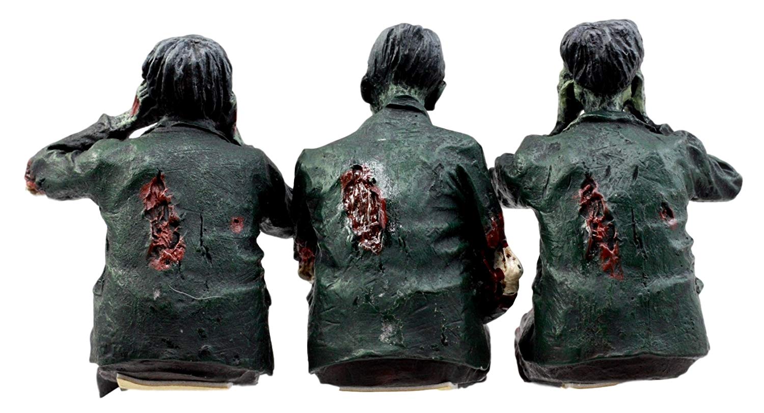 Ebros 4"H Wise Walking Dead Zombie See Hear Speak No Evil Figurine Set Shelf Sitters