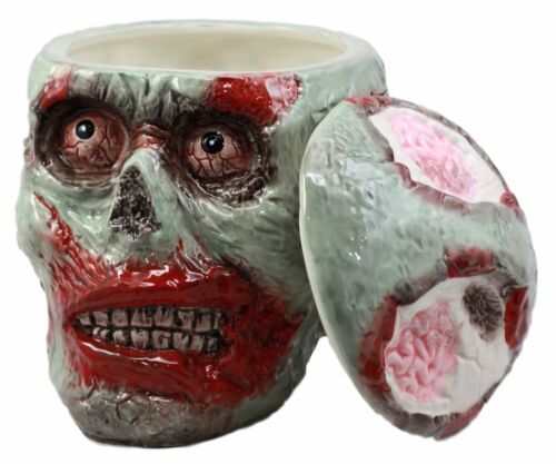 • This zombie cookie jar spells out the zombie apocalypse perfectly! This zombie head is filled with decaying flesh as well as open wounds that would not heal. He is a ghastly sight to behold!