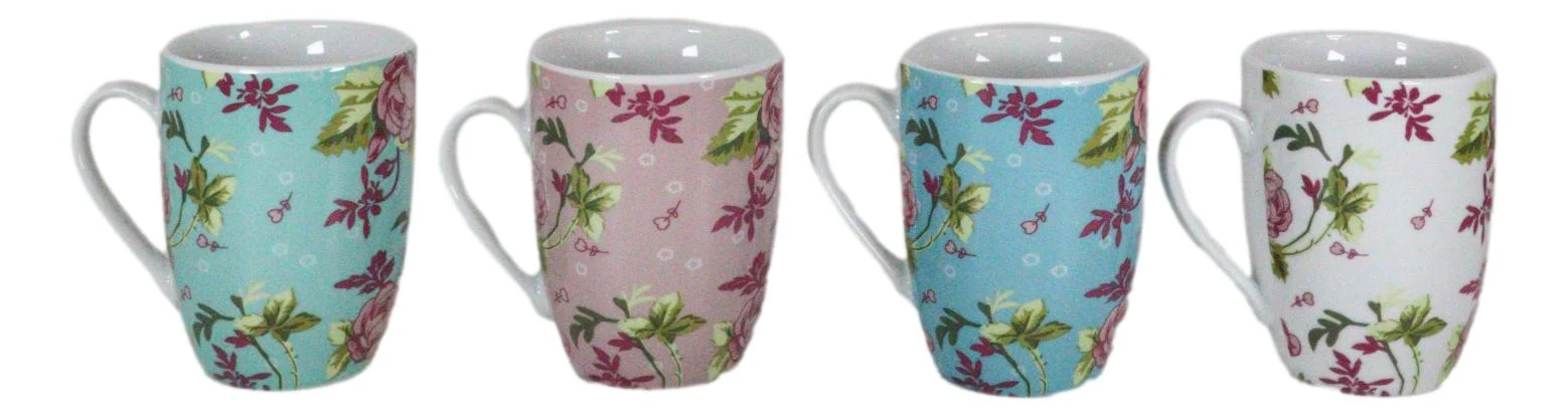 • These beautiful mugs come in four color variety as pictured. They are sold as a set and they are designed with flora and fauna Victorian theme. They will be excellent and classy drinkware to be used for high tea, coffee times, dinner hosting and what have you. They are very high quality imports sold at great bargain to you free shipping within continental USA!